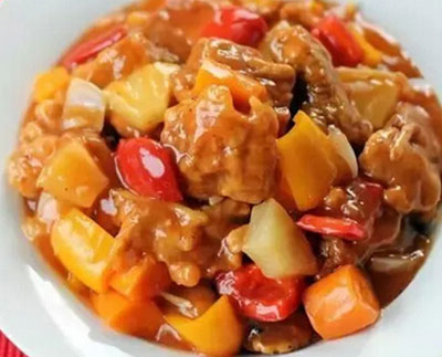 主料:里脊肉半斤多、紅彩椒塊半杯、菠蘿塊1小杯、洋蔥塊1小杯、胡蘿卜塊半杯、面粉1小杯、雞蛋1個